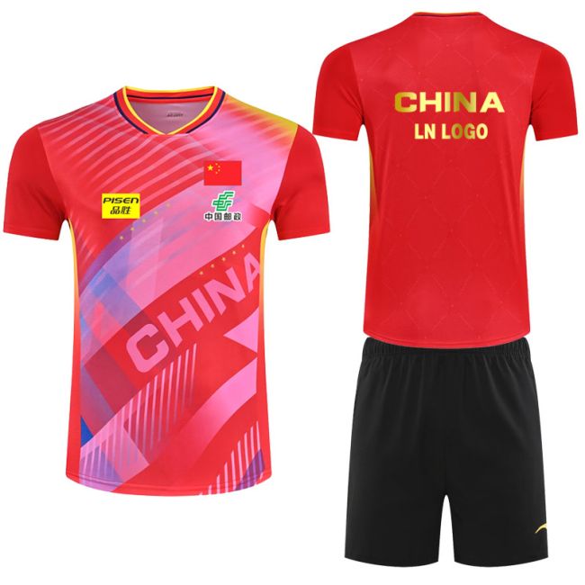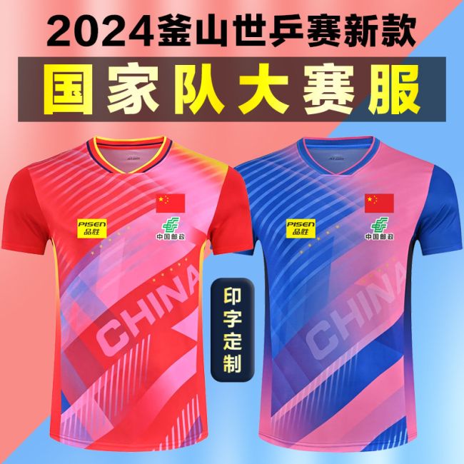 2024 Busan World Table Tennis Championships China National Team quick dry jersey, breathable and stretchy for competition and training, with custom name & number printing available.