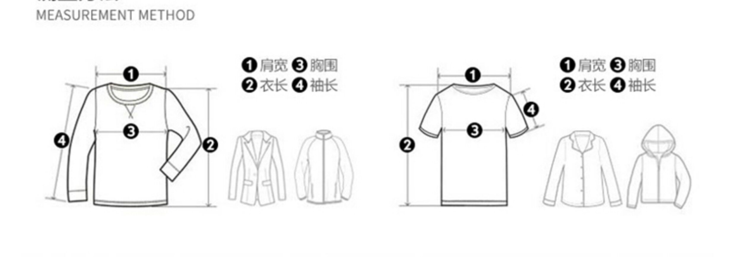 | Size | Clothing Length | Shoulder Width | Chest Circumference | Sleeve Length | Recommended Height | Recommended Weight |