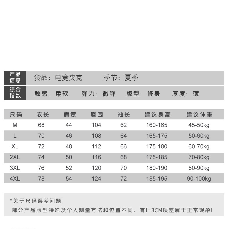 | 3XL | 76 | 52 | 120 | 70 | 180-190 | 80-90kg |