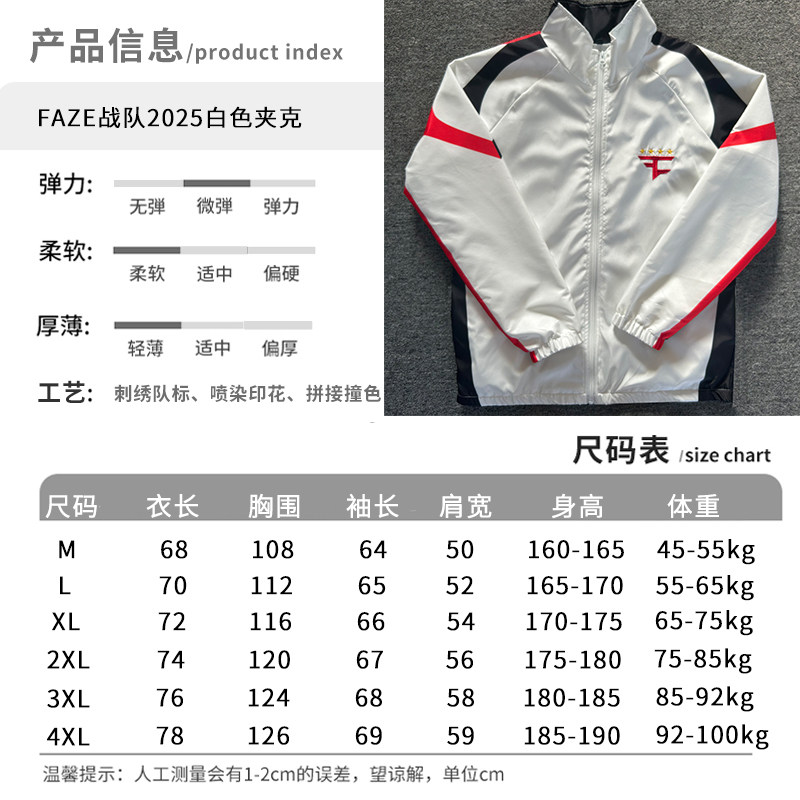 | Size | Clothing Length | Chest Circumference | Sleeve Length | Shoulder Width | Height | Weight |
