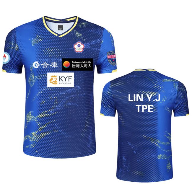 Elevate your table tennis game with the 2025 New Men's Blue Short Sleeve Table Tennis Jersey, the exact match shirt worn by world-class player Lin Yun-Ju in 2025 ITTF World Tour events and World Championships qualifiers, co-designed with the iconic Butterfly brand.