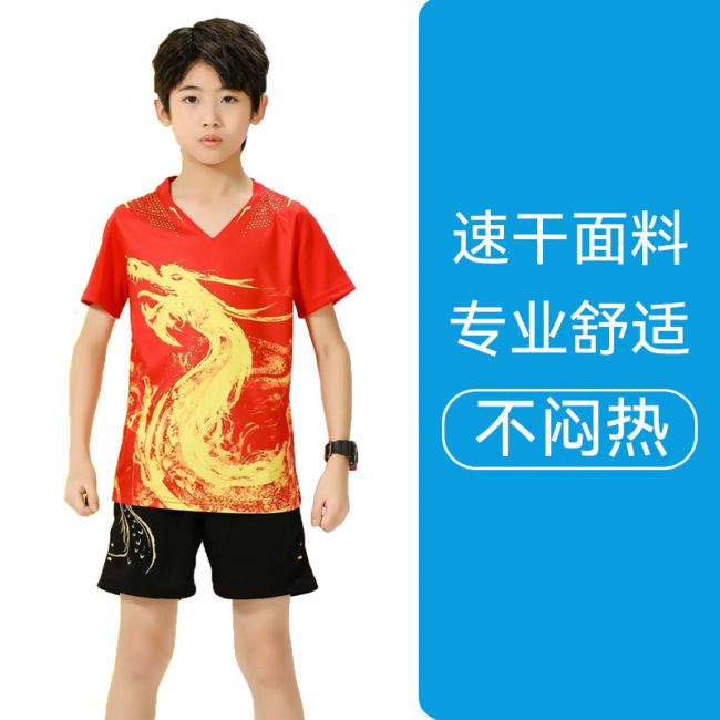 Kids Table Tennis Set Quick Dry Training Jersey Sun Yingsha Style red