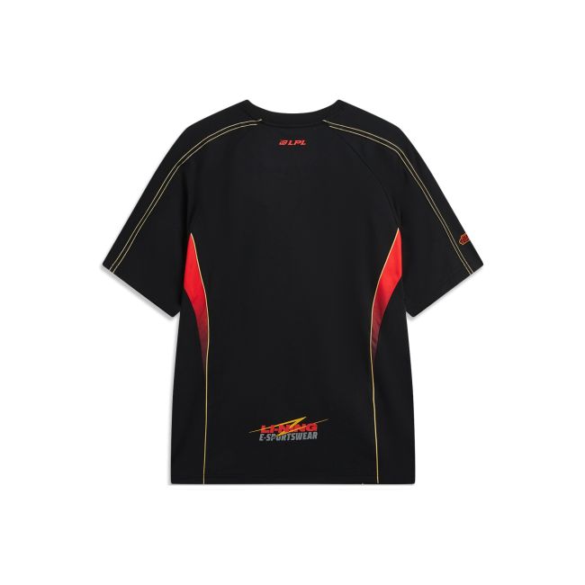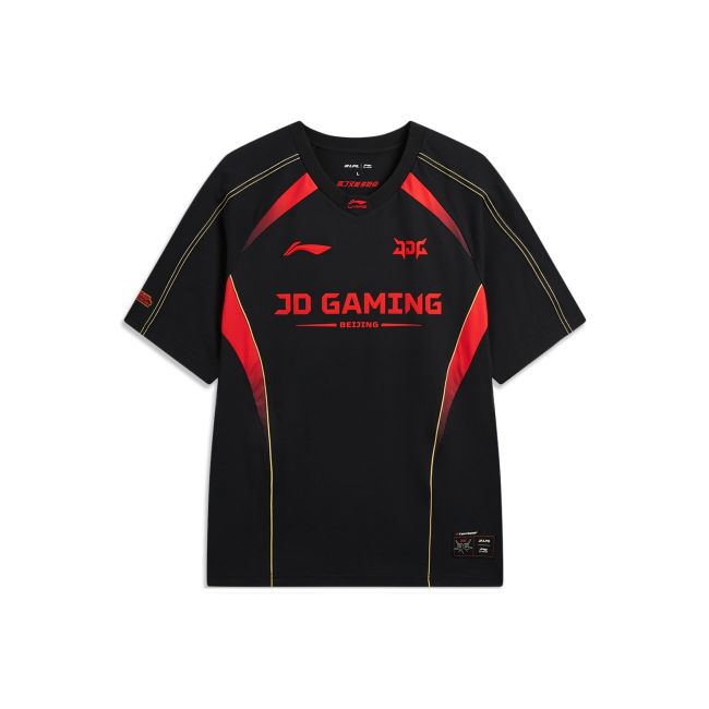 Li Ning × League of Legends 2026 LPL JDG Team Jersey,inspired by the “Lucky Cloud” motif, the jersey features a black-and-red color-blocked palette, with the JDG crest, LPL logo and Li-Ning wordmark printed on the chest and back.
