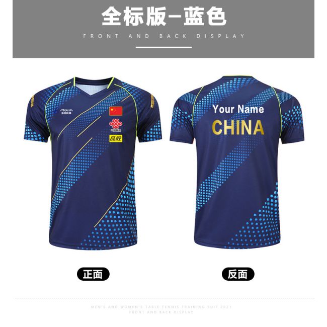 Elevate your game with our Men's Quick Dry Blue Table Tennis Jersey, the official replica of the China National Team's competition wear for the World Championships. This high-performance jersey is the same style worn by elite players at the China Open, combining professional design, premium materials and full customization to meet the needs of competitive players and fans alike.