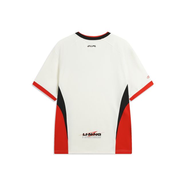 Brand: Li Ning Name: Li Ning x LOL TES Team 2026 LPL Jersey Composition: Polyester 91% Spandex 9% Fit: Loose Thickness: Moderate Collar: V-neck Sleeve: Shoulder-placed sleeves Main item number: AHSW685-1 Release date: January 10, 2026 Length of garment: Regular style Sleeve length: Short sleeves Pattern: Letters, Others, Print pattern, Brand Logo Fabric: Spandex, Polyester Applicable season: Summer Function: Breathable Style: Straight fit